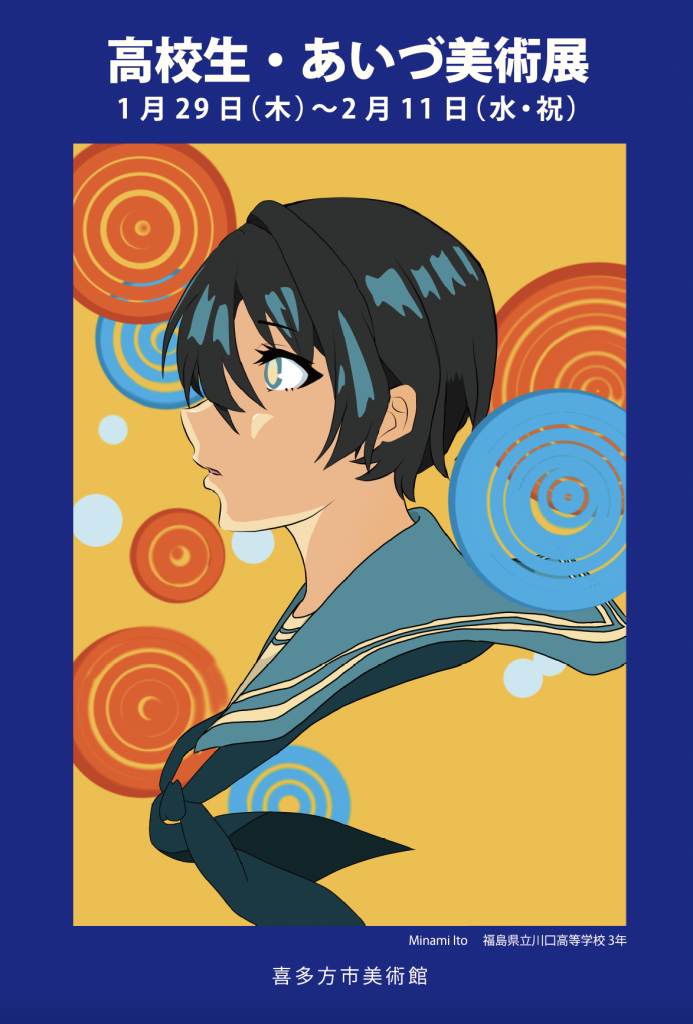 生徒たちによる日頃の研鑽の成果と、生き生きとした感性が光る作品の数々をお楽しみください。展覧会イメージのデザインは福島県立川口高等学校3年の伊藤みなみさんが制作してくださいました。